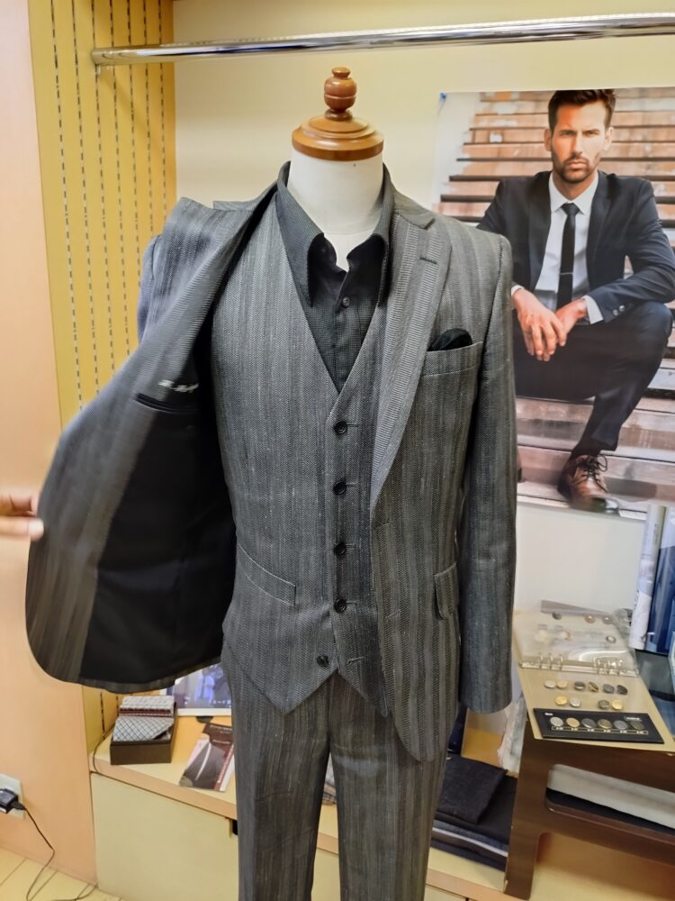 オーダースーツ 2025.10.15 ドレススーツ 皆様こんにちは! まだまだ残暑が残る時期ではありますが、ようやく涼しい季節に近づいています。 さて今回は一風変わった商品のご紹介です。 シルバーグレーのヘリンボーン柄にシルク混の光沢が映える生地になります。 お祝い事 ~ ドレスカジュアルな着こなしまでご利用できます。 色合わせはやはりモノトーンでシックに決めるのが相性いいですね! 成人式でも注目を浴びること間違いなし!(笑) 通常のビジネススーツ以外にも個性的な生地を取り扱っておりますので、 お近くのM2PLANTへ起こし下さい。 ツイート シェア Google+ Pocket LINEで送る ! はてブ
